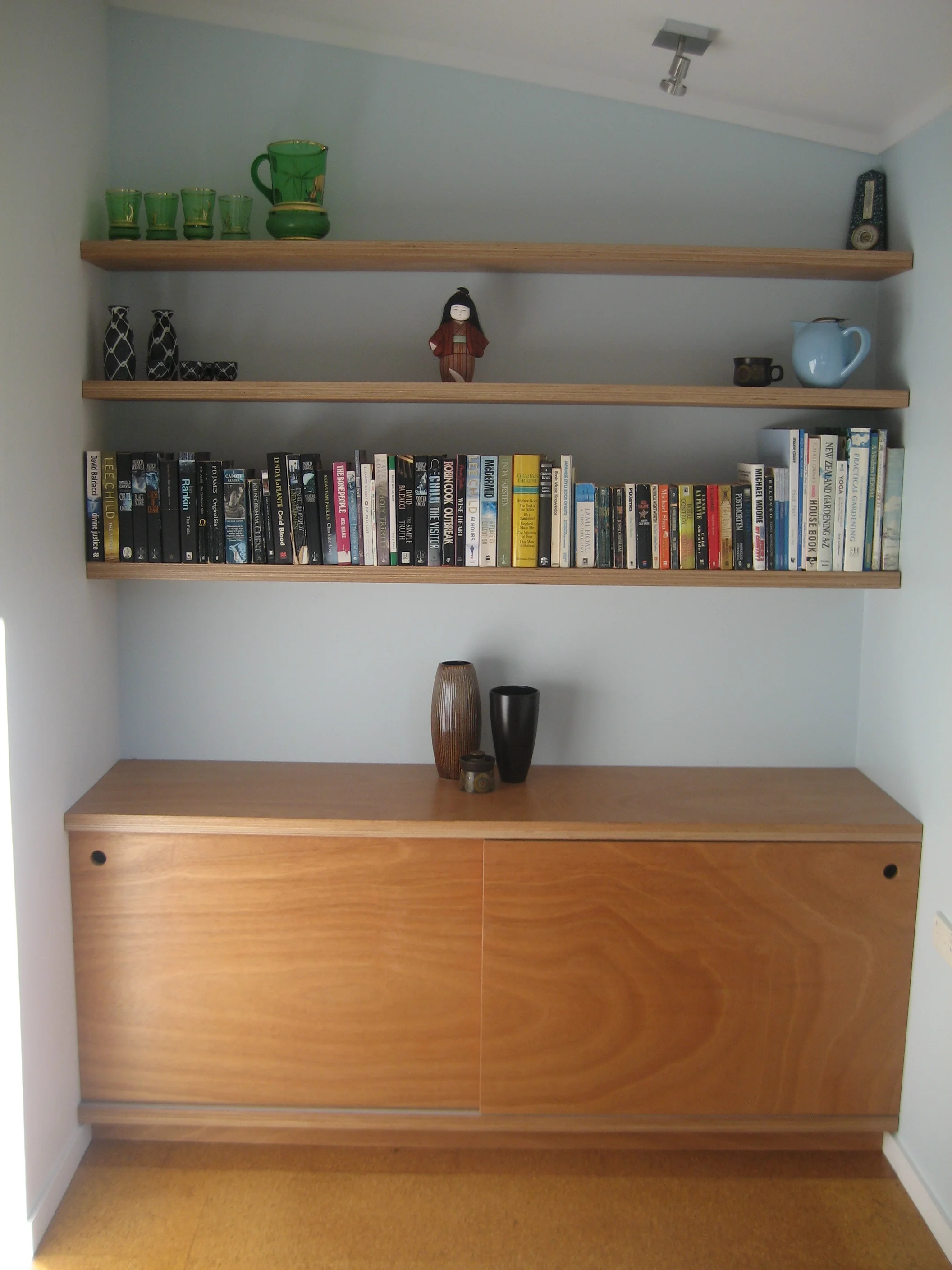 Everyone needs shelves. A custom shelving solution should display to best advantage your "things" be it books, CD's, objects, framed photos, or anything else you want to have on view. A set of shelves may cover an entire wall, or may work well with a cabinet below - a bespoke cabinet provides storage and a surface for your stereo, TV, objects, and anything else.